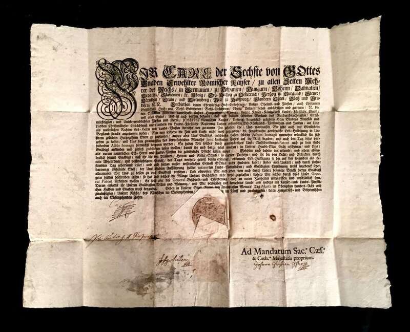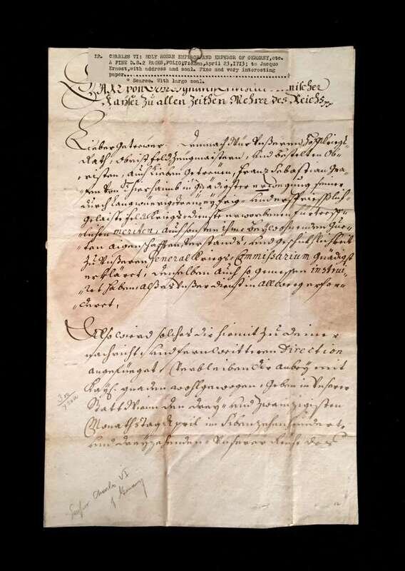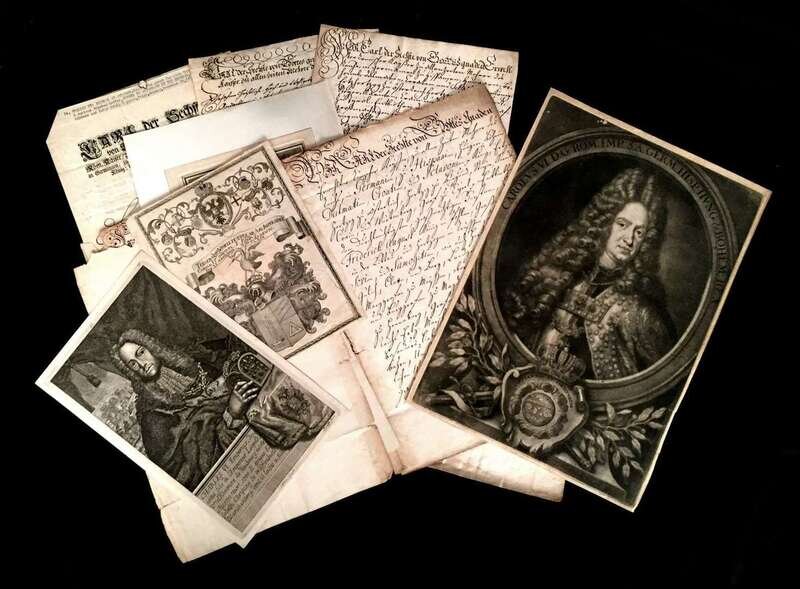 (Manuscripts : European Regents). Charles VI, Holy Roman Emperor (1711--1740). Dossier of Eight (8) Documents Signed.