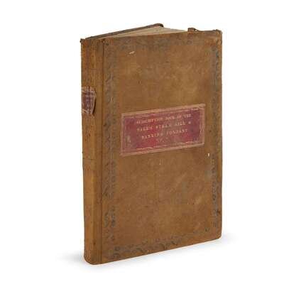 (American Manuscripts - Economic History) 3 Vols. Salem Steam Mill. 19th-century Ledgers: "Subscription Book of the Salem Steam Mill and Banking Company, Volume 1." ca. 1822-1826. 132 pages, all of which filled-in including back paste-down. Folio, original rough calf; soiled and cocked. Labels on spine and front panel red morocco gilt, text toned and browned. Pages 9-13 outline Rules and Regulations for investment. Abundant listings of cash deposits with associated family names Bassett, Mulford, Garrison, Tuft, Abbott, Brooks, Wilson, Jeffers, Nicholson, Cattel, Belton, Clement, Richman, Hunt, Dunn, et al. Newsclippings affixed to front paste-down, "List of Counterfeit Notes." * (No Title). Salem Steam Mill record of shares sold, ca. 1823-1834. Folio, original rough half calf and marbled boards; scuffed, rubbed and bumped. 296 pages filled-in. Associated names include New Jersey Assemblyman Daniel Garrison; Salem notables Morris Hancock and Samuel Clement; and families Sinnickson, Brooks, Jeffers, Mulford, Hall, Dunham, Williams, Tyler, et alii. * "Subscription Book of the Salem Steam Mill and Banking Company, Volume 3." ca. 1837-1840. Folio, original rough calf; soiled and cocked. Condition altogether comparable to that of "Volume 1." Folio, soiled rough calf with gilt red morocco labels. 100 pages filled-in.