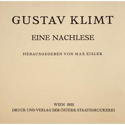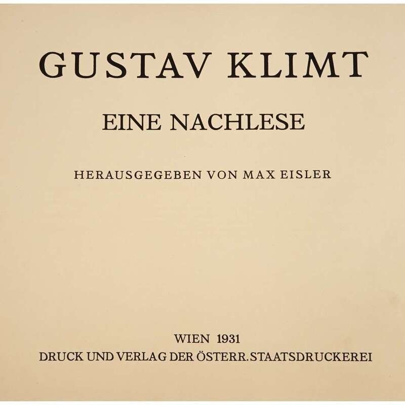 (Modern Art : Livres d'Artistes) 1 Portfolio. Klimt, Gustav; Eisler, Max. Gustav Klimt, Eine Nachlese. Vienna: Osterr. Staatsdr, 1931. #32/200 German-language sets. Square folio clam shell box, original patterned green cloth, gilt-metallic cover label; light edge wear, joints occasionally frayed. Text and 30 mounted plates (16 in color) loose as issued. Internally crisp and clean. Portfolio size, 20 1/4 x 18 3/4 inches; 515 x 485 mm.