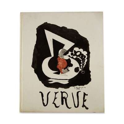 (Modern Art : Periodicals) 1 Vol. Verve: Revue artistique et litteraire. Paris, 1952. Vol. 7, nos. 27 and 28. Folio, original color pictorial white boards; minor wear. With original lithographic frontispiece by Georges Braque; original lithographs by Henri Matisse, "Le tristesse du roi"; original color lithographs by Marc Chagall, "Visions de Paris;" other original lithographs by Giacometti et al. Some very minor internal smudging, but a tight, bright copy.