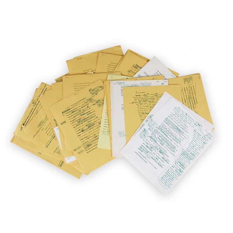 (African-Americana) Lot. (Haley, Alex). Small Archive of Typescripts and other material, papers of Alex Haley, ca. 1968-1980. Includes typescript draft sheets for Roots with Haley's manuscript annotations and corrections; copies of typescript research sheets for Roots; typescript copies of periodical articles relating to Haley's work on what became Roots; copies of 18th-century and other early documents relating to what became Roots; material relating to the television series Roots the Next Generation; letters from readers. About one archival box.