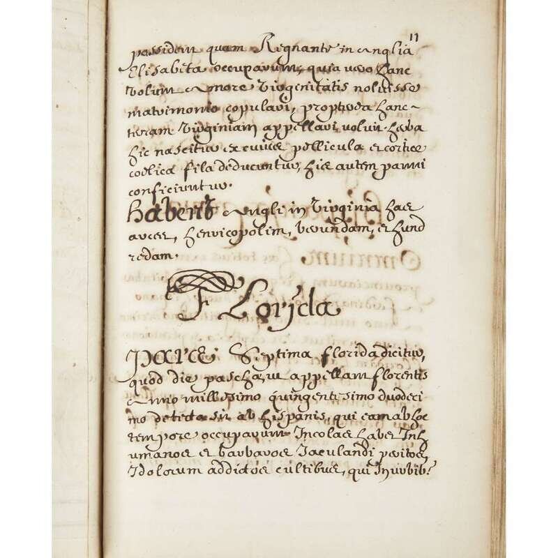 (Maps & Atlases : Terrarum Orbis Geographica) 1 Vol. Composite Atlas and Manuscript Cartographical Treatise. (n.p.), 1658 (terminus post quem). 4to. Old gilt-paneled calf, gilt spine compartments, marbled endpapers; spine cover chipped, joints tender but quires restored presumably ca early 20th century. Houses 33 hand-colored copper-engraved plates by N. Sanson; treatise itself divided into two parts (pp. 1-73) and (pp. 1-29), each with separate engraved title page and manuscript title in ink "descriptio africae" and "descriptio americae," respectively. Neo-latinate text and pagination in brown ink, toned throughout with some bleed-through not at all affecting legibility. Ptolemaic in form and content; clearly a redacted, epitomated rewriting of Sanson's own text. Pedagogical use highly likely. "descriptio Africae" borrows 18 fold-maps from Sanson's 1656 "L'Afrique", albeit deviating from the published sequence there; "descriptio americae" consists in 15 maps from the 1657 "L'Amerique", and includes the noteworthy California qua island "audience de gaudalajara, nouveau mexique, californie, &c" (this latter approximately 240 x 210 mm, upper and lower margins trimmed to plate mark).
