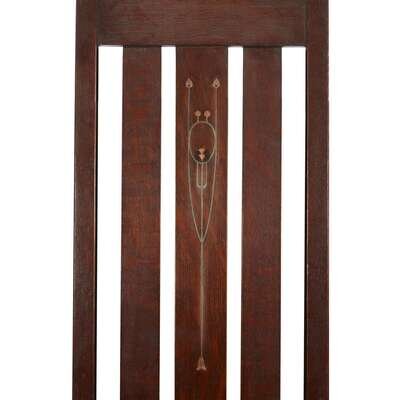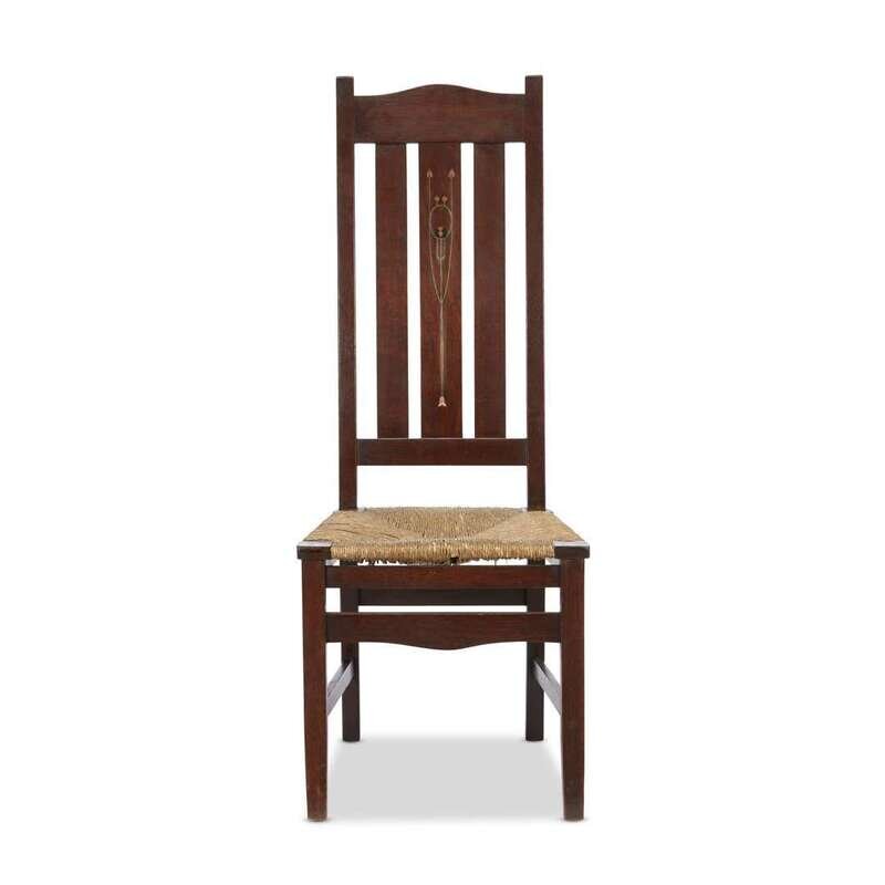 HARVEY ELLIS (AMERICAN, 1852-1904) AND GUSTAV STICKLEY (AMERICAN, 1858-1942) INLAID SIDE CHAIR, CRAFTSMAN WORKSHOPS, EASTWOOD, NEW YORK, CIRCA 1904