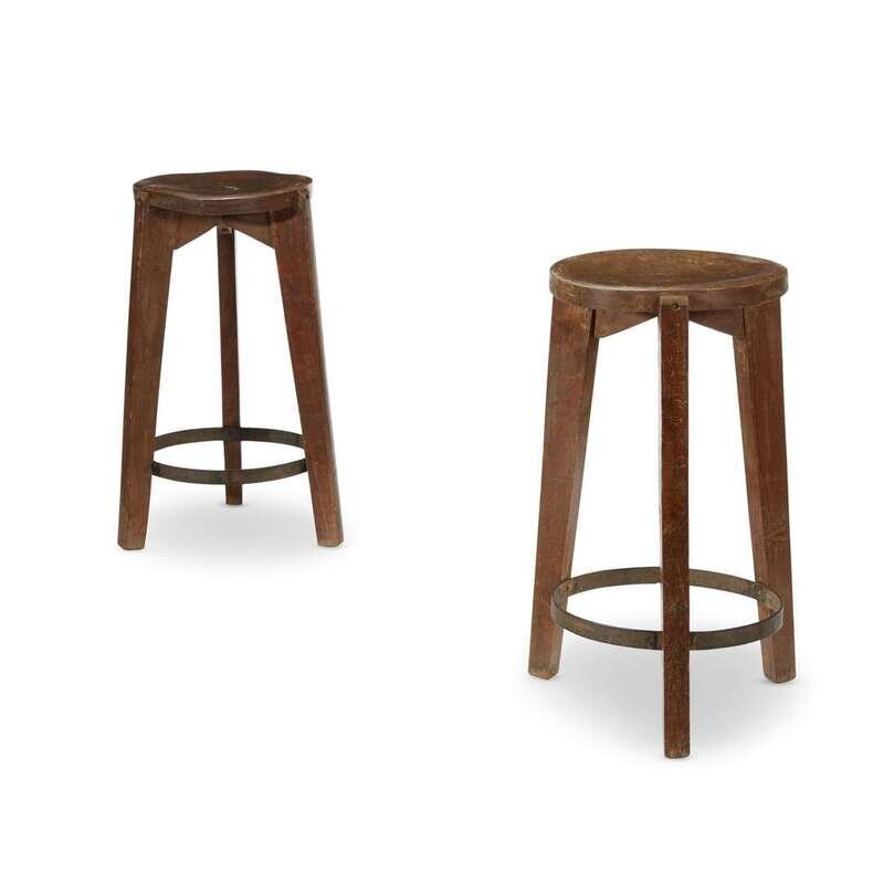 PIERRE JEANNERET (SWISS, 1896-1967) PAIR OF STOOLS FOR PUNJAB UNIVERSITY, CHANDIGARH, FRANCE/INDIA,