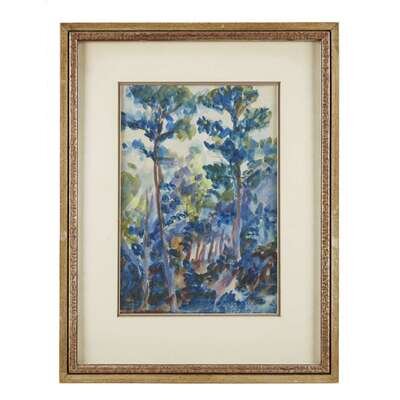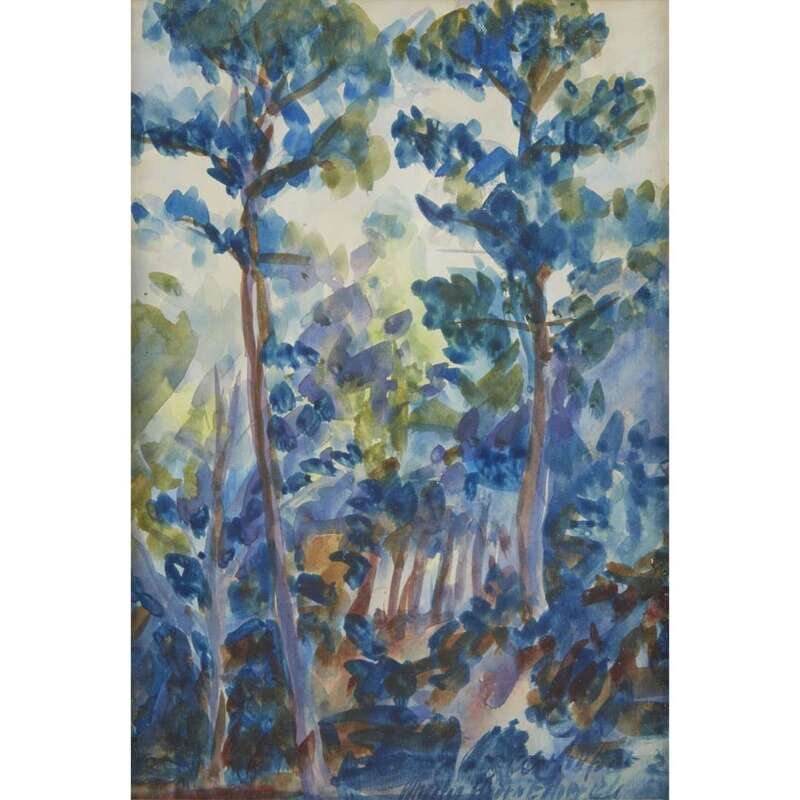 Watercolor Signed and dated bottom right: "Fairhope 20, Wharton Harris Esherick" Backing board with obscured pencil inscription: "Pines of Alabama Wharton H. Esherick Paoli Pa"
