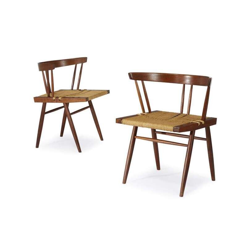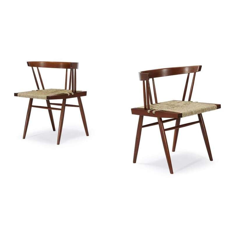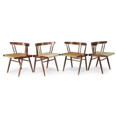 GEORGE NAKASHIMA (AMERICAN, 1905-1990) SET OF FOUR GRASS-SEATED CHAIRS, NEW HOPE, PENNSYLVANIA, 1960/68