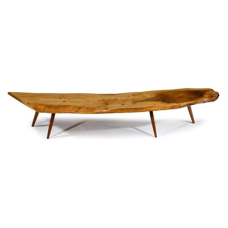 GEORGE NAKASHIMA (AMERICAN, 1905-1990) UNUSUAL ENGLISH WALNUT COFFEE TABLE / BENCH, NEW HOPE,