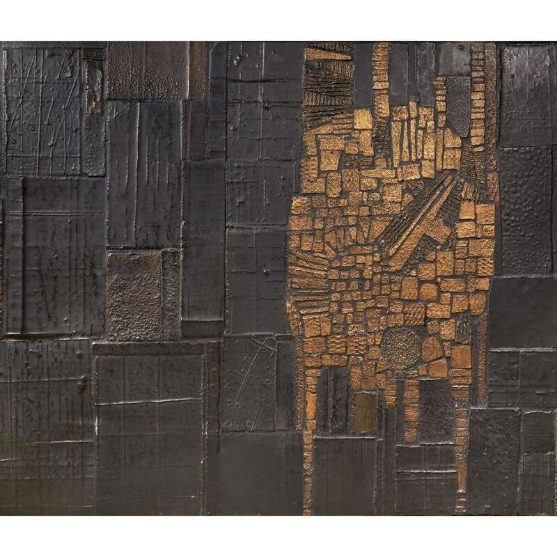 Stainless steel, sculpted and painted resin, glass Impressed signature to panel: "PIA MANU"