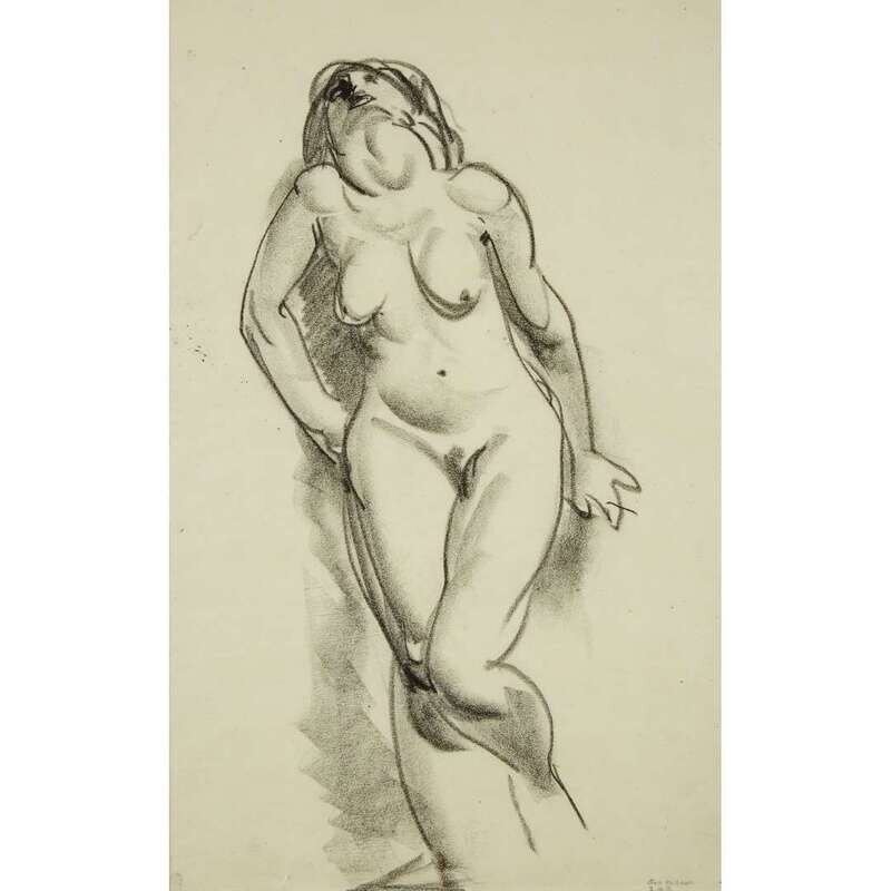 GEORGE BELLOWS (AMERICAN, 1882-1925) "STANDING NUDE WITH UPWARD GLANCE"