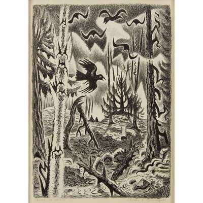 CHARLES EPHRAIM BURCHFIELD (AMERICAN, 1893-1967) "CROWS IN MARCH"