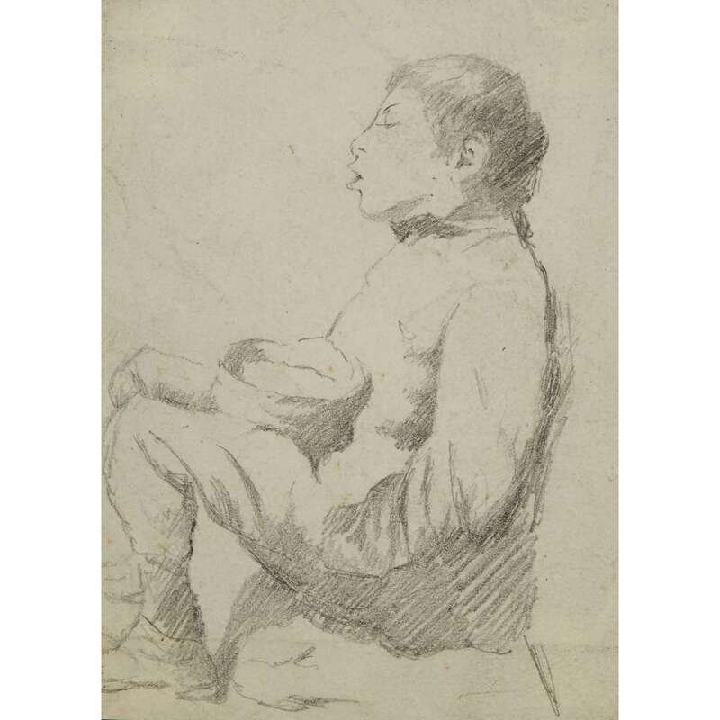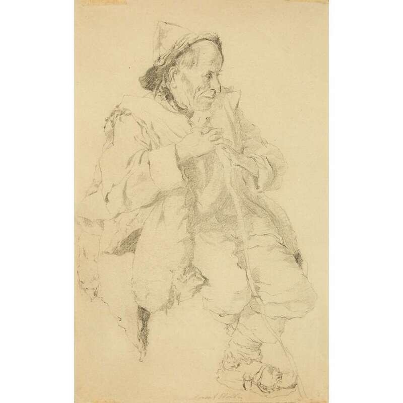 TWO DRAWINGSJOSEPH STELLA (AMERICAN, 1877-1946) "SEATED OLD MAN WITH STAFF"