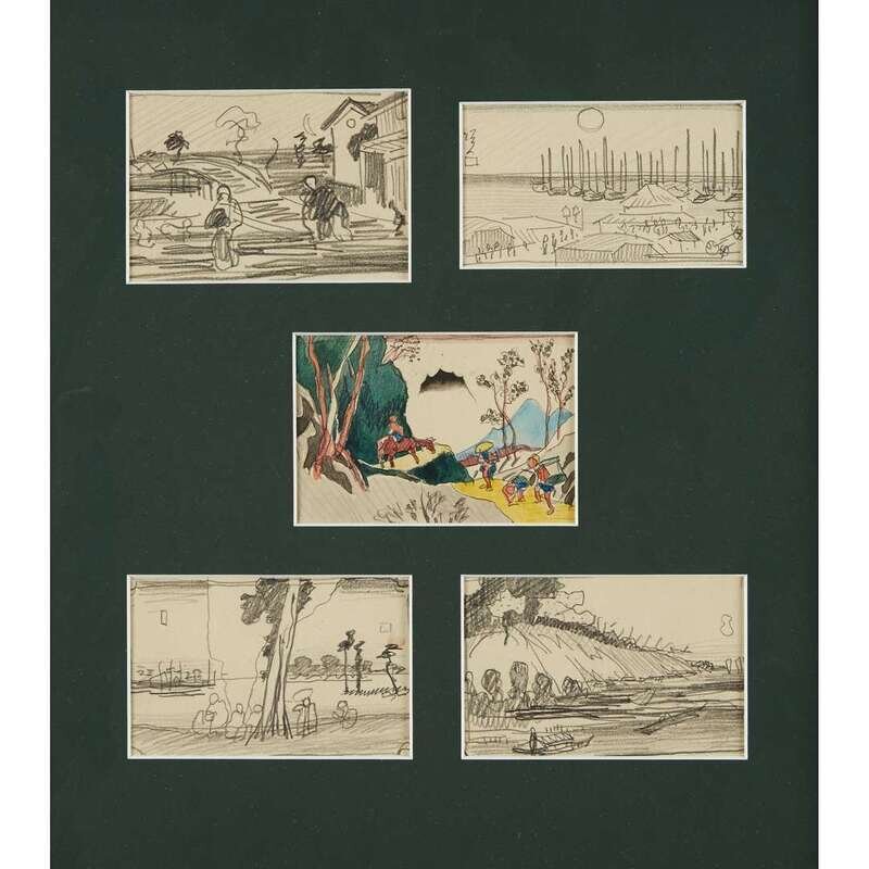 OSCAR FLORIANUS BLUEMNER (AMERICAN, 1867-1938) FIVE DRAWINGS (AFTER ANDO HIROSHIGE)