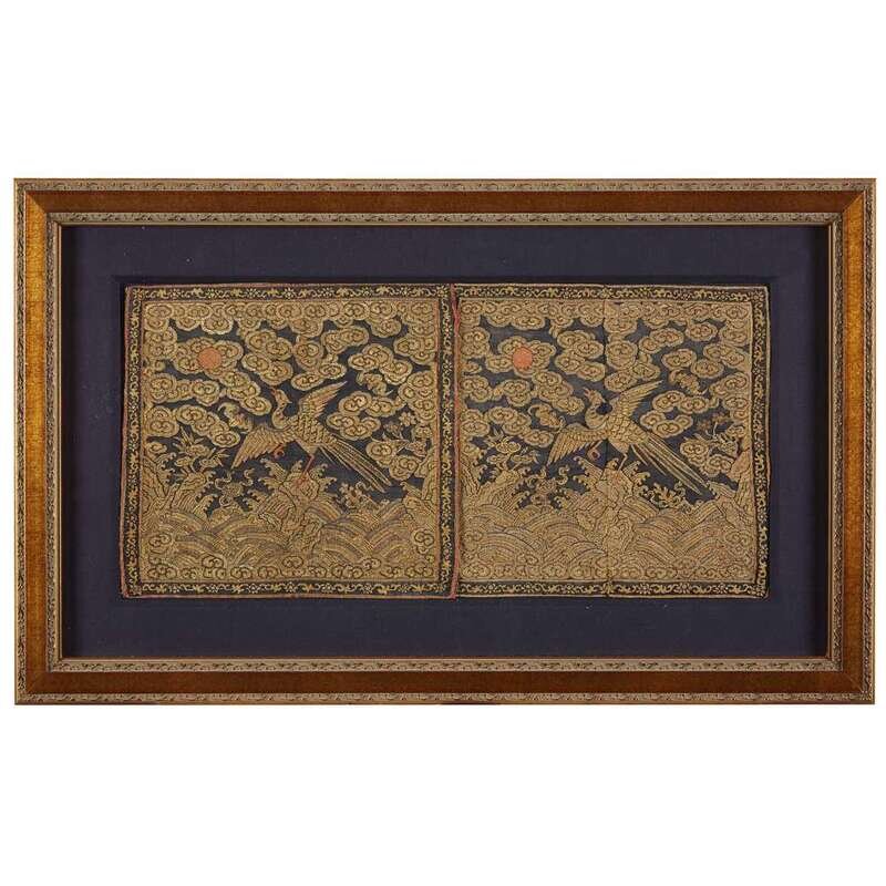 A pair of Chinese kesi tapestry gold and black silk second civil rank 'golden pheasant' badges circa 1810