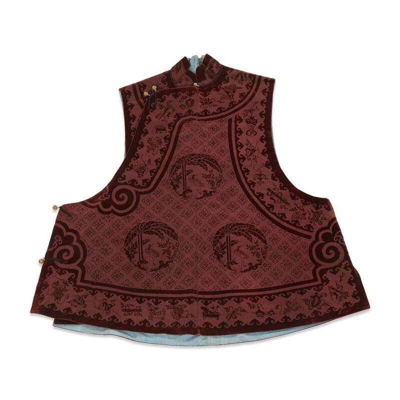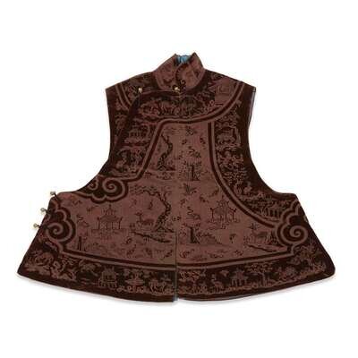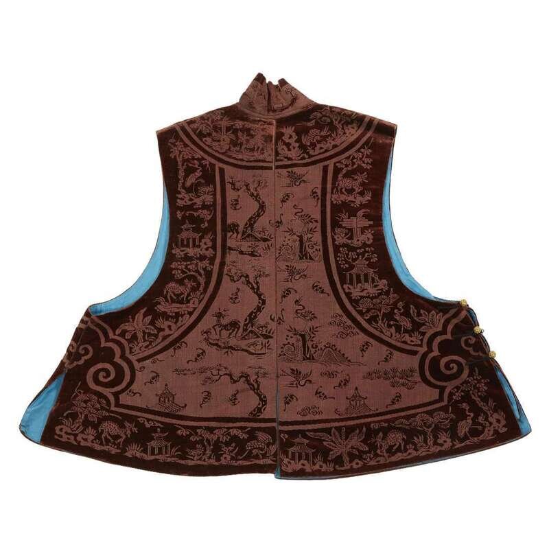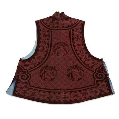 Two Chinese plum voided velvet women's outer vests late 19th century