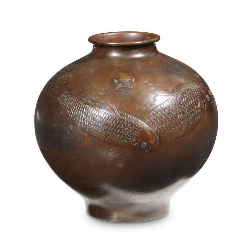 A Japanese brown-patinated bronze spherical vase early 20th century