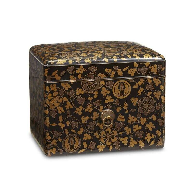 A Japanese scroll and mon decorated lacquer rectangular box late edo period