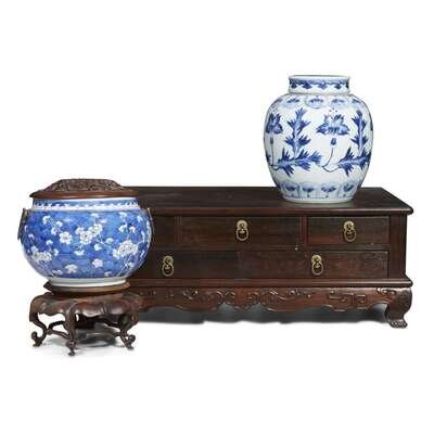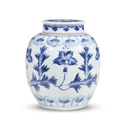 A Chinese blue and white 'lilies' ginger jar and cover 18th century