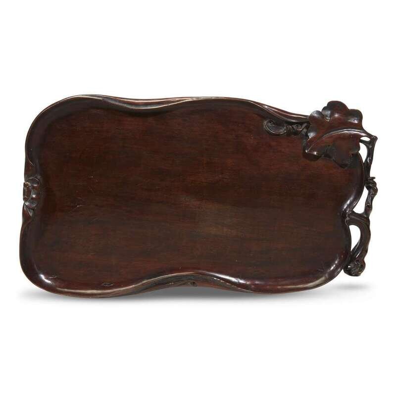 A Japanese carved hardwood gourd-form tea tray late 19th century