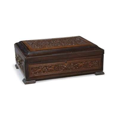An Anglo-Indian carved wood work box 19th century