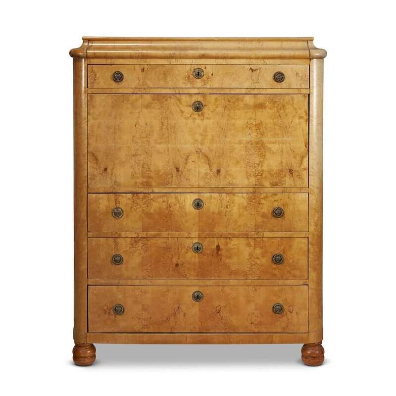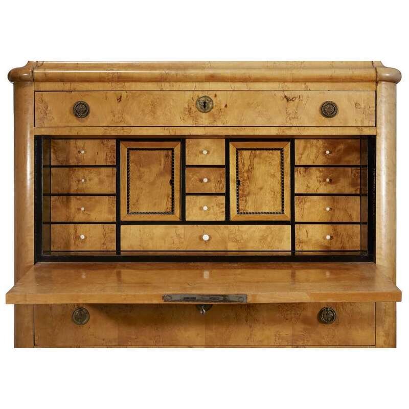A Biedermeier parcel-ebonized birch veneered secretary Northern European, possibly Baltic, 19th century