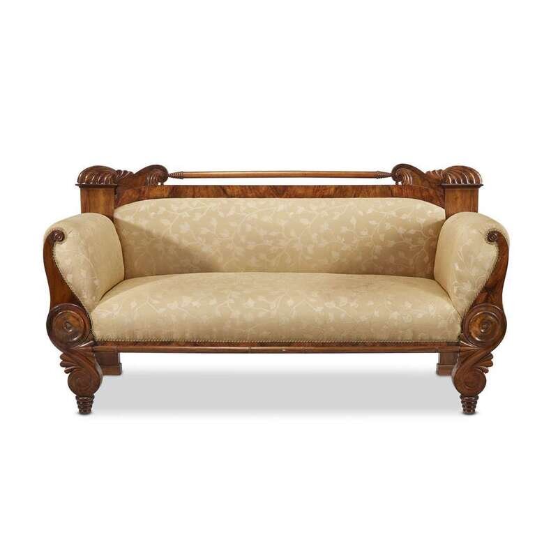 An Austrian Biedermeier walnut veneered sofa likely Vienna, second quarter 19th century