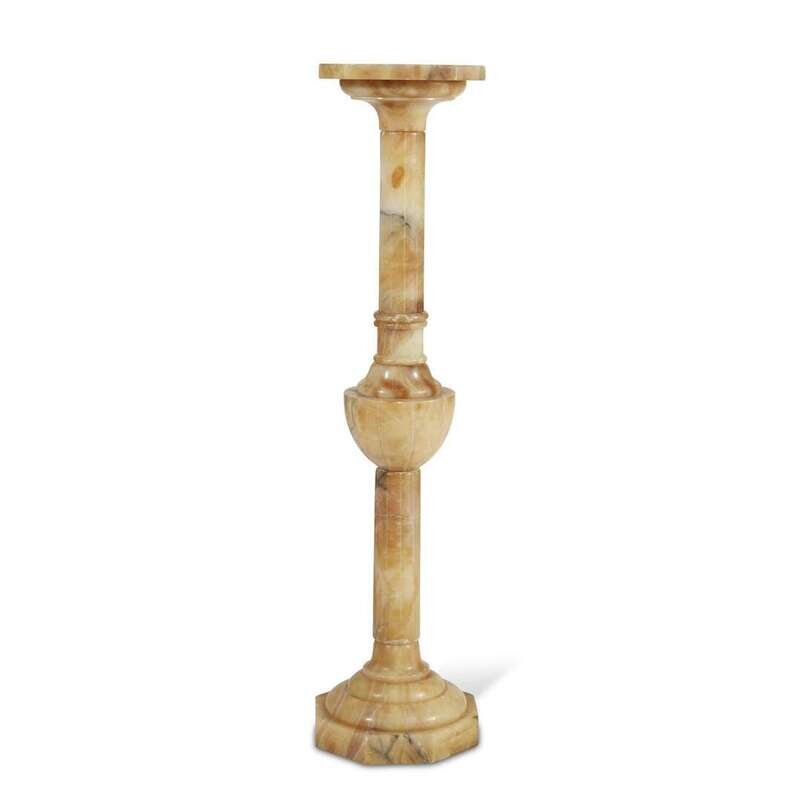 The octagonal top held aloft by a turned vasiform pillar, raised on a stepped octagonal base.