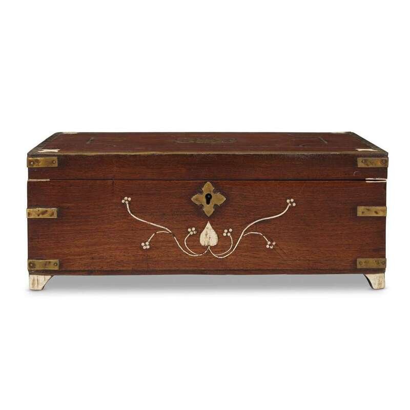 An Anglo-Indian brass and mother-of-pearl inlaid mahogany letterbox circa 1850