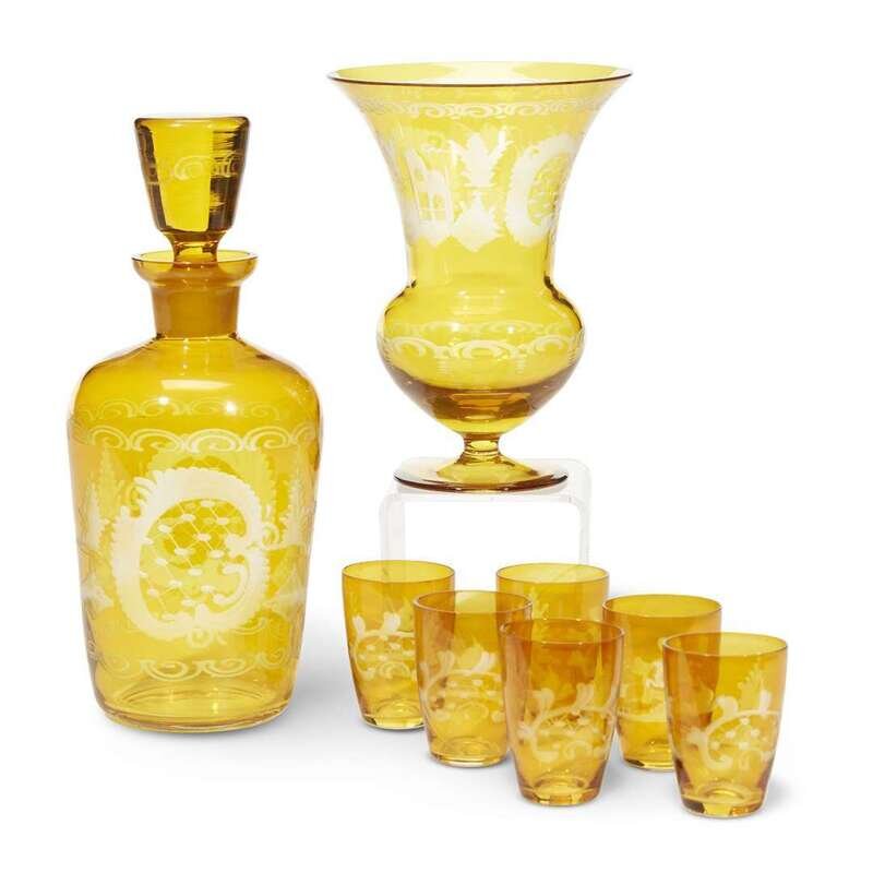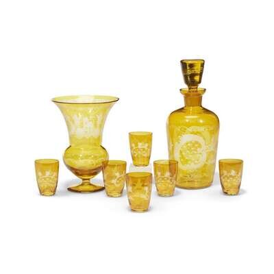 A Bohemian amber cut-glass drinking set Egermann, Haida, Bohemia, late 19th century