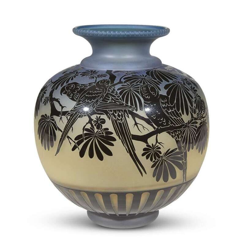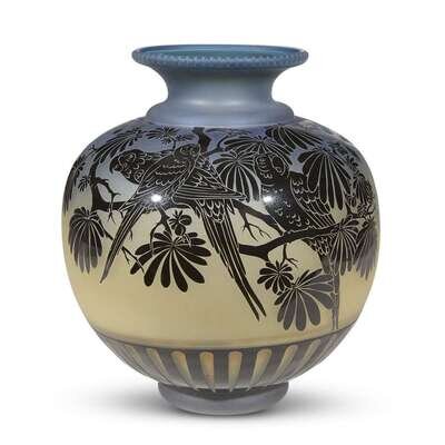 An acid-etched cameo glass vase with parrots Gary Genetti (American, b. 1953), Warwick, New York, 2001