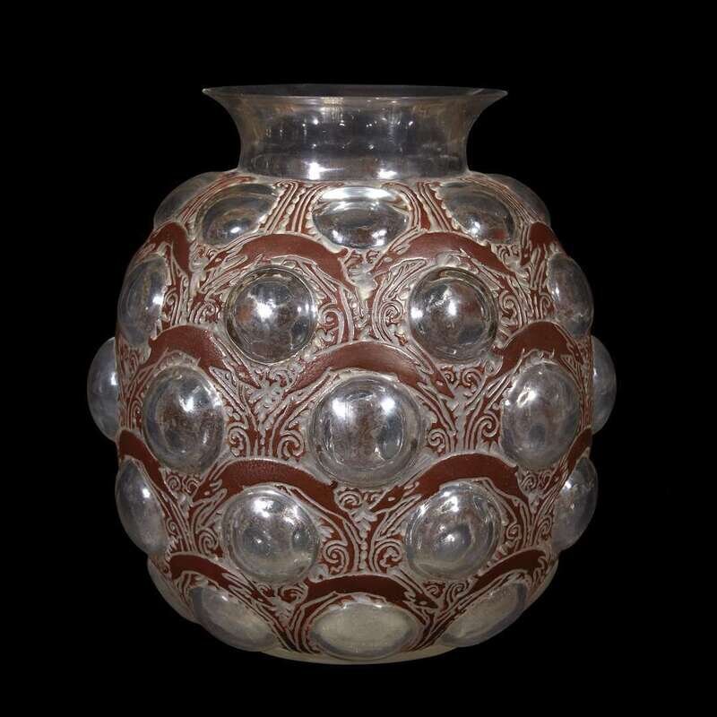 A Lalique glass “Antilopes” vase No. 875, France, circa 1925