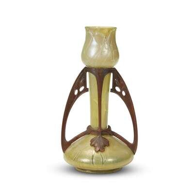 An Austrian Loetz-style metal-mounted glass vase circa 1900