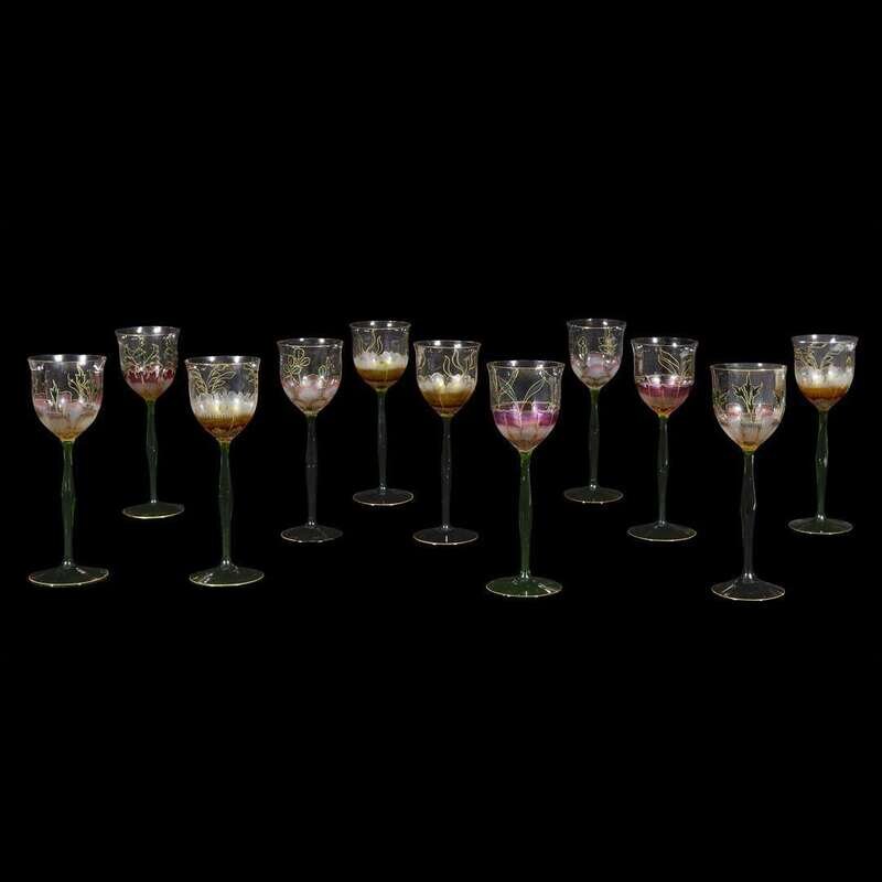 Eleven gilt and enameled glass goblets probably Theresienthal, Austria, circa 1902