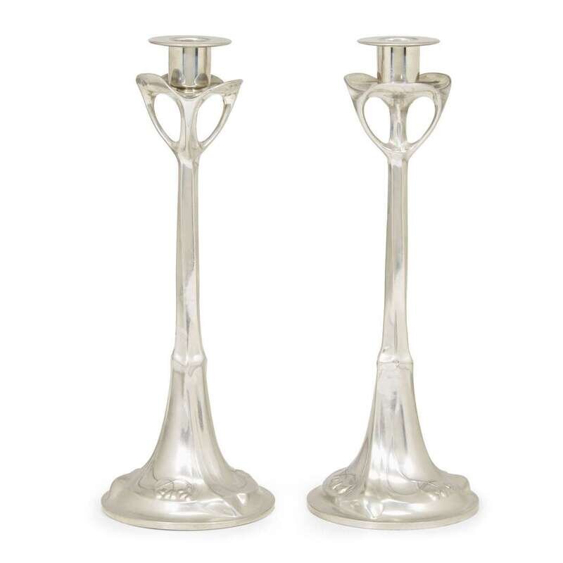Pair of Jugendstil pewter candlesticks Kayserzinn, Germany, modern