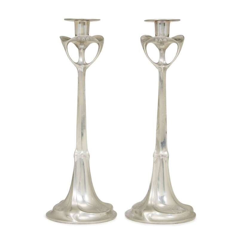 Pair of Jugendstil pewter candlesticks Kayserzinn, Germany, 20th century