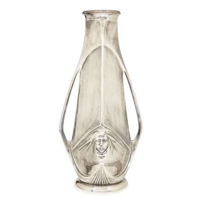 A large Jugendstil silverplate vase with faces Argentor-Werke, Austria, circa 1905