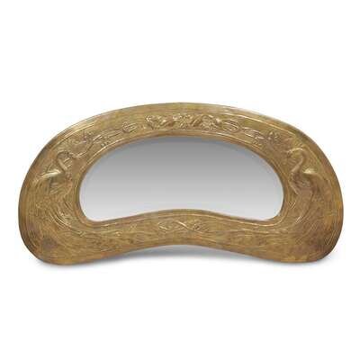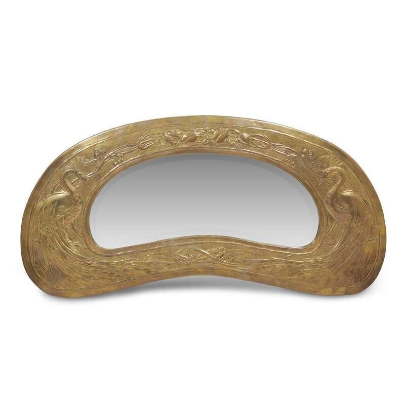 Glasgow school repousse brass mirror with peacocks possibly Margaret Gilmour, circa 1900