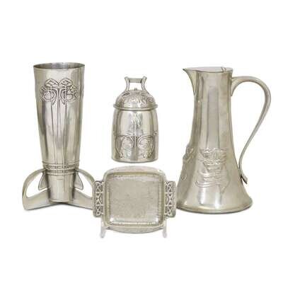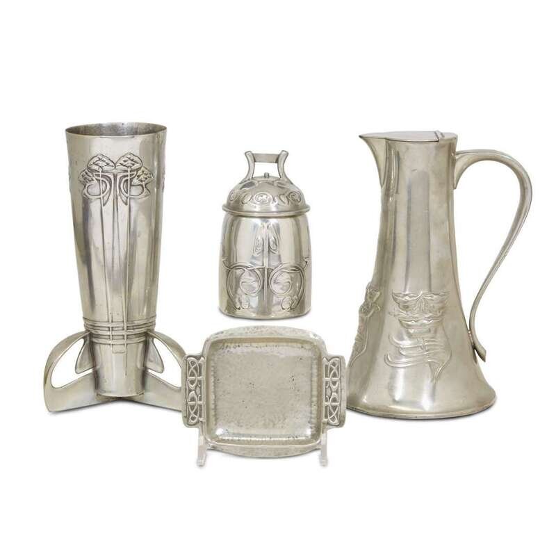 Group of four "Tudric" pewter articles Archibald Knox for Liberty & Co., London, circa 1905
