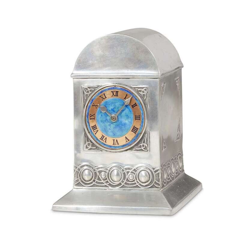 A "Tudric" pewter and enamel clock Liberty & Co., London, circa 1920