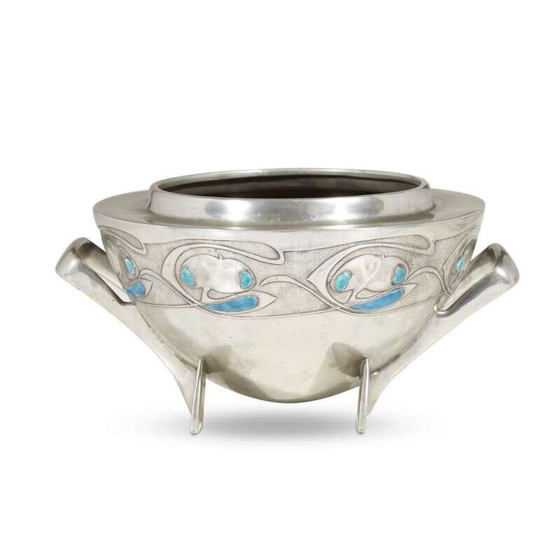 An enameled pewter "Tudric' bowl Archibald Knox for Liberty & Co., London, circa 1903