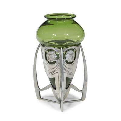 A "Tudric" pewter and glass bullet-shaped vase Archibald Knox for Liberty & Co., London and James Powell, circa 1900
