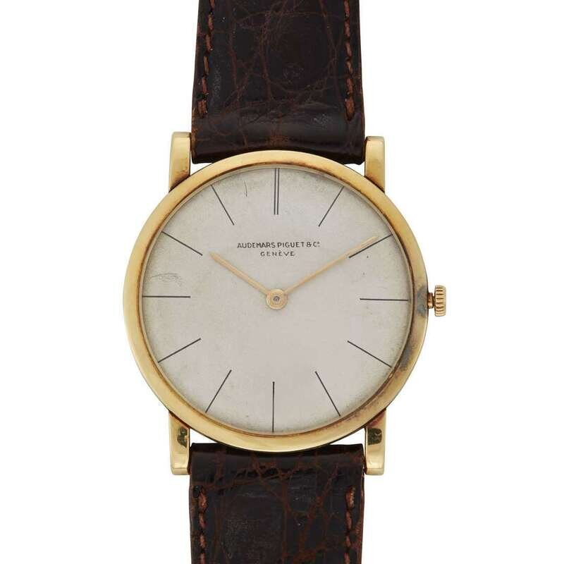 Audemars Piguet circa 1930 manual-wind watch, features a 32mm 18k yellow gold case surrounding a white dial on a brown crocodile strap with a gold plated tang buckle. Functions include hours and minutes. This watch does not come with box and papers.