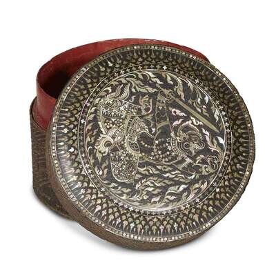 A Thai mother of pearl-inlaid and basketry lacquer box and cover rattankosin period, probably 19th century