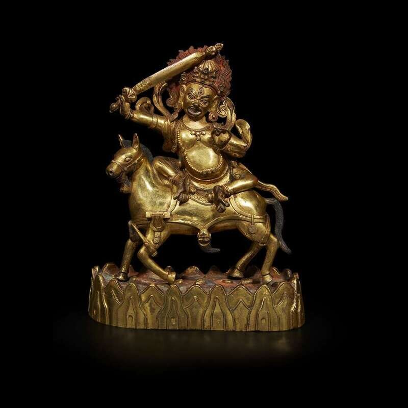 A Sino-Tibetan gilt bronze figure of Tshangpa Karpo