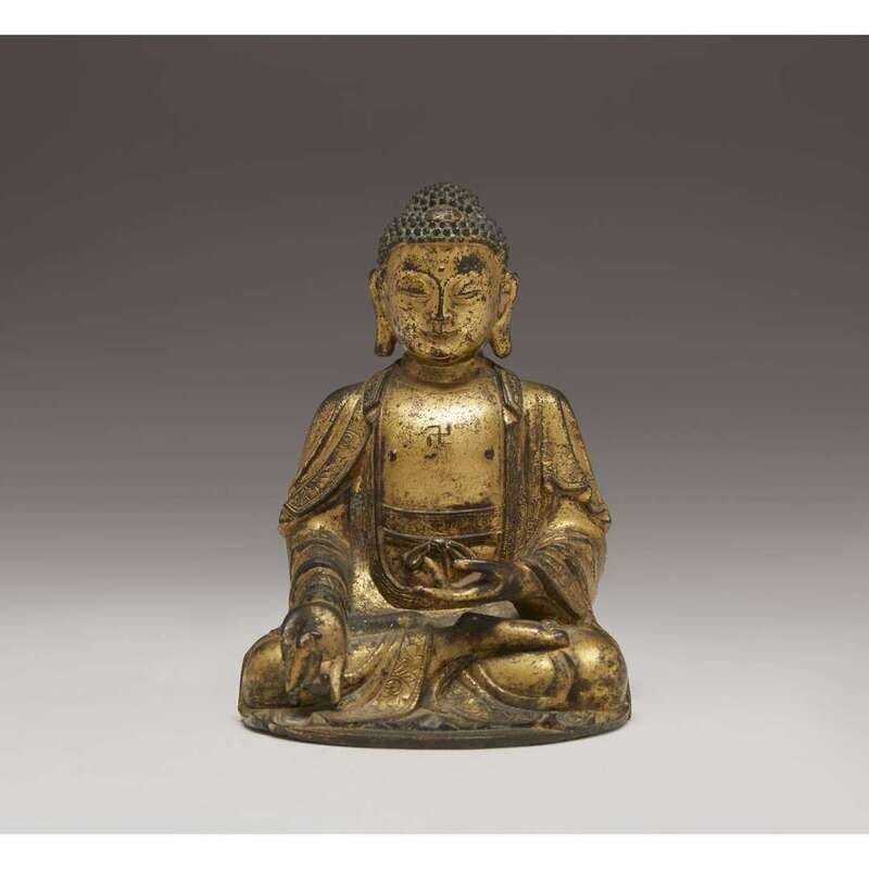 A Sino-Tibetan gilt bronze figure of Bhaisajyaguru 16th/17th century