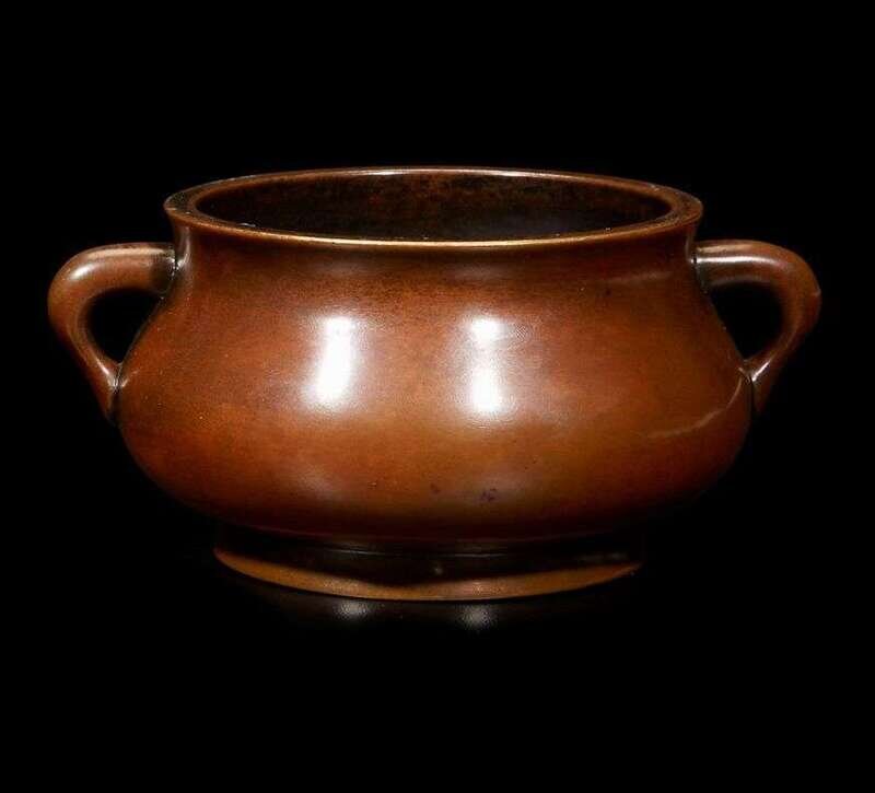 A Chinese patinated bronze censer 18th century