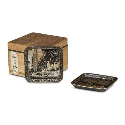 A set of eight Chinese mother-of-pearl inlaid lacquer square dishes 18th century