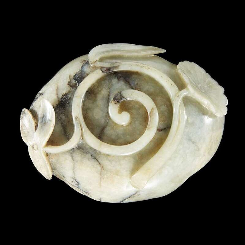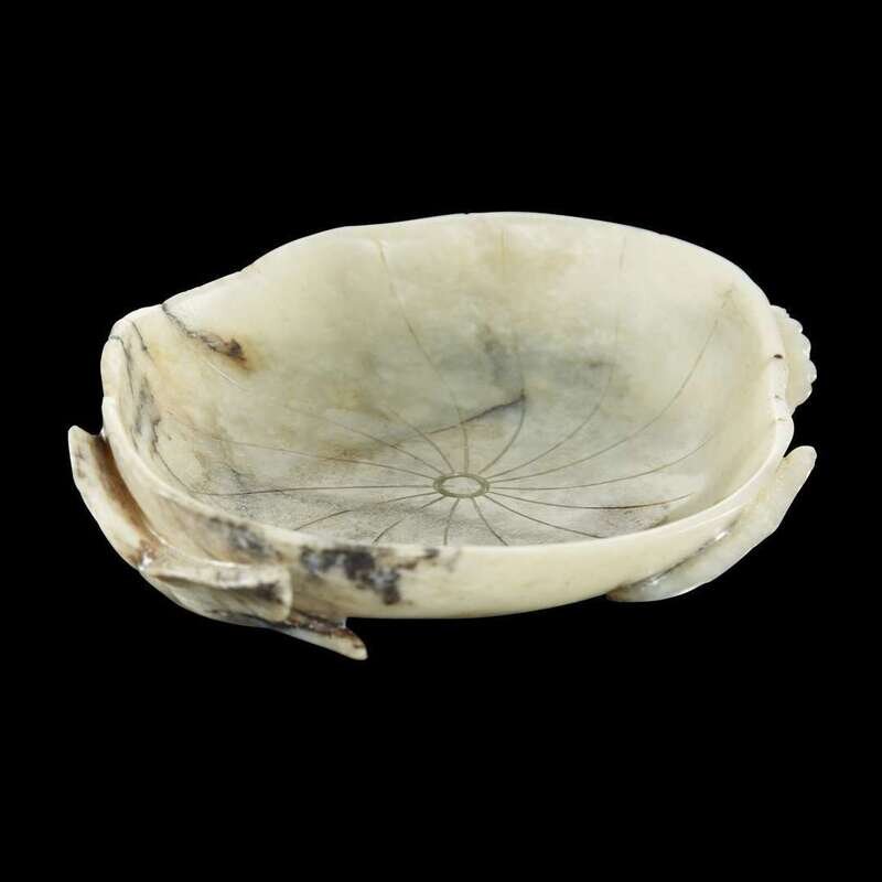 A Chinese gray and white jade 'lotus leaf' brush washer 17th/18th century