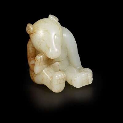 A Chinese celadon and russet jade 'bear' carving
