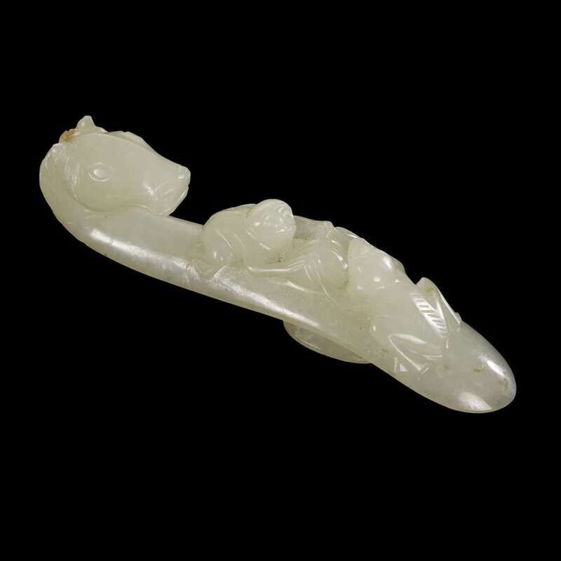 A Chinese white jade 'horse and monkeys' belthook qing dynasty