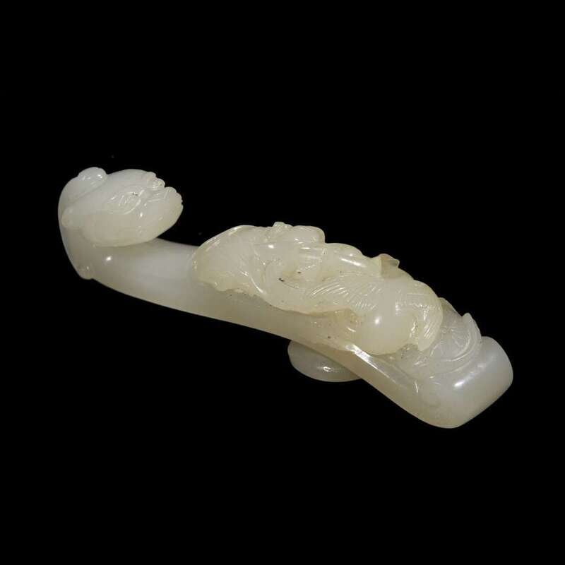A Chinese white jade 'dragon, geese and lotus' belthook qing dynasty, probably 18th century